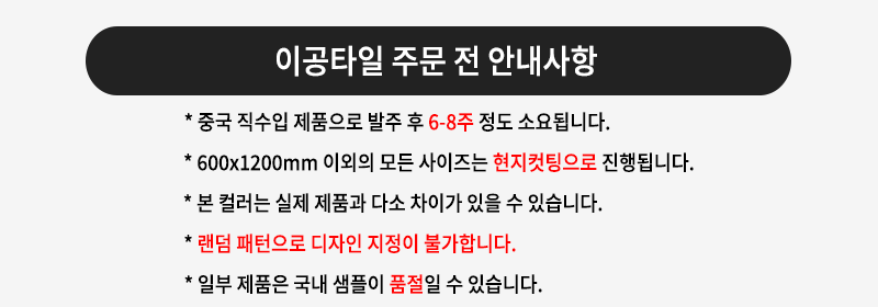 * 중국 직수입 제품으로 발주 후 6-8주 정도 소요됩니다. *